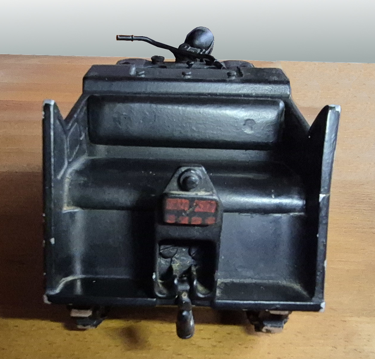 Interessanterweise stellt das Modell kein Kettenkrad in sehr frühem Prototypenstadium dar, sondern es besitzt bereits den Heckturm der 2. Generation (Steckdose oberhalb des NOTEK). Allerdings ist es noch grau lackiert.